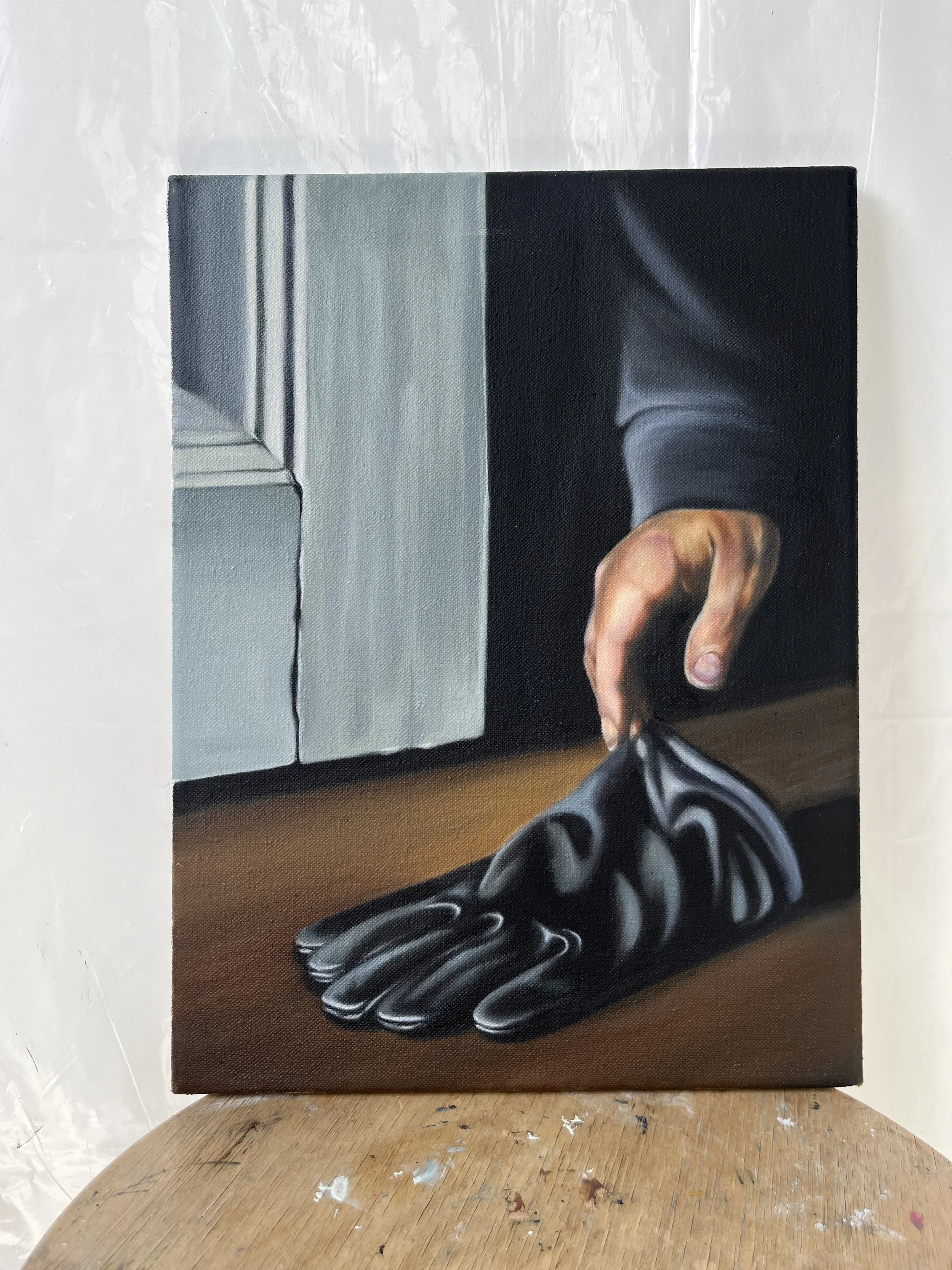 But, I chose to work in oil because I really wanted to work in an esteemed medium that would force a slow process, something very tangible and hands-on. For me, in a world that is increasingly digital, the analogue process feels like an escape.